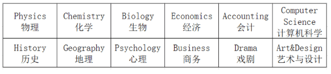 *注:學(xué)生需依據(jù)自身情況在12門科目中自選4門選修科目(不能多也不能少)作為主科,為將來的A-Level課程學(xué)習(xí)打好基礎(chǔ)。